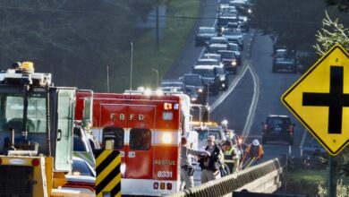 Car passing traffic hits pickup, crashes into front of big towtruck, becoming stuck for hours as Caspar Creek Bridge is closed off and on for much of Monday afternoon