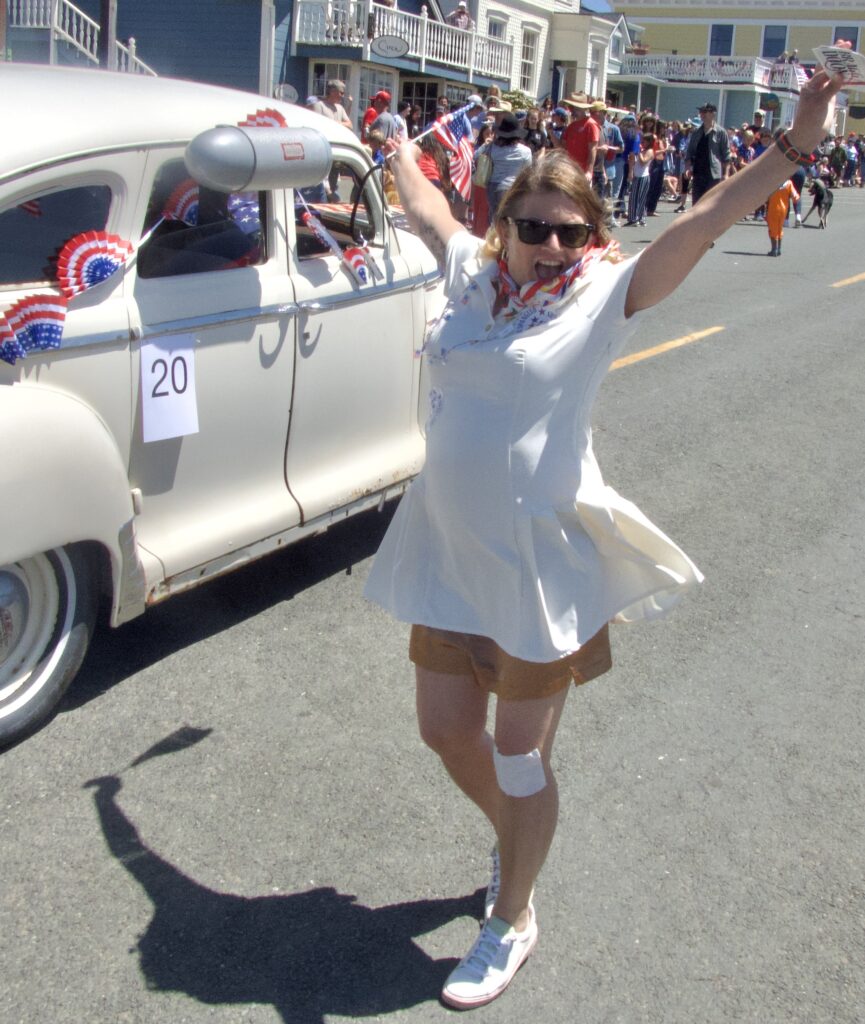 Listen to the faces at Mendocino’s 4th of July parade. You can still see in the faces in the photos the exuberance at being beautiful and ugly Americans. Everywhere was the American flag, still the symbol of the American myth that conquered the world and steered Europe and Japan toward Democracy.