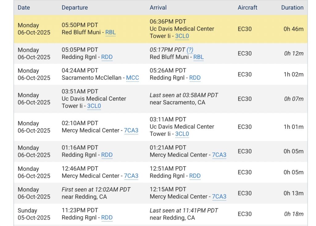 This aircraft had flown seven missions on the day of the crash, tracing a path between Redding, Red Bluff, UC Davis, and Sacramento—each flight a thread in the fragile web of rural emergency care.