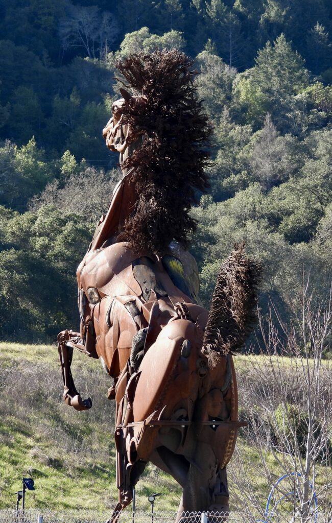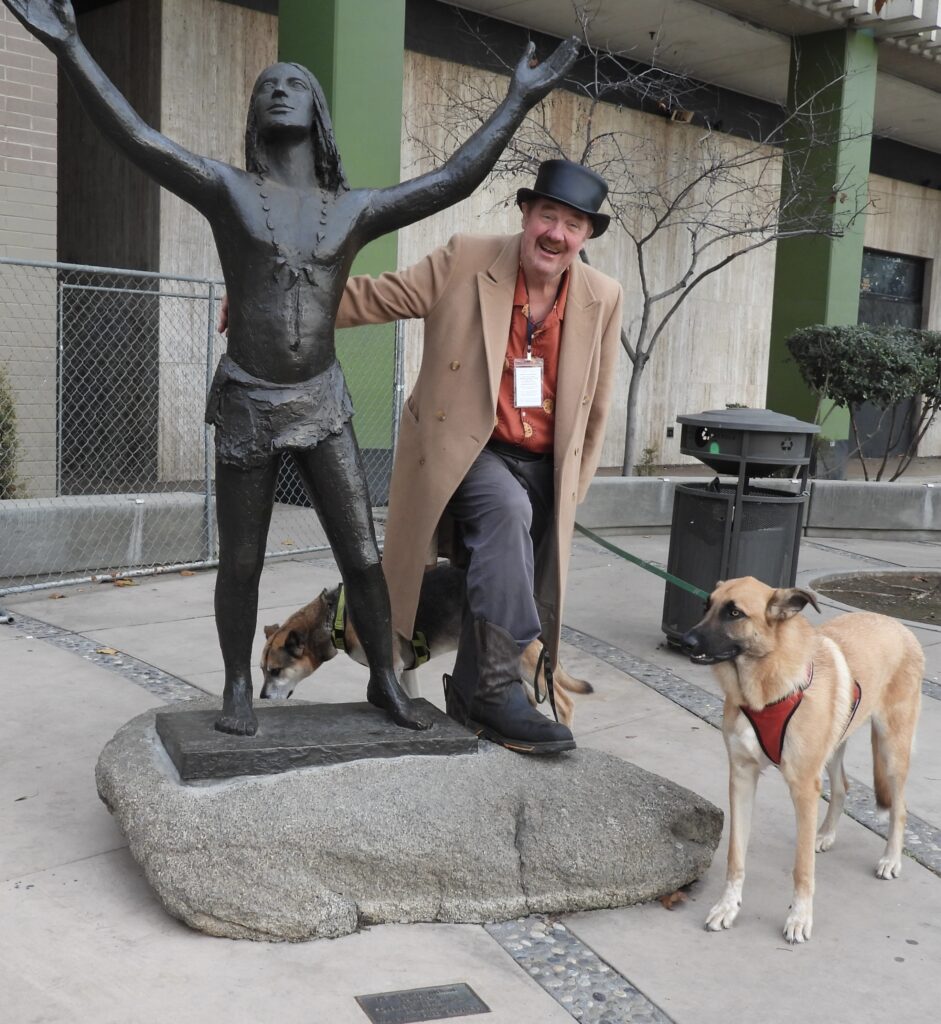Italian immigrant sculptor Clement Renzi created this Yokuts figure in 1974. “Yokuts” means “the people,” and they were unusual among California tribes — each group had its own name, language, and territory. They never farmed Fresno’s rich soil but were renowned seed gatherers, with botanical knowledge equal to any modern PhD. Today they’re centered at the Santa Rosa Rancheria. Renzi is one of the Central Valley’s great artists, also known for the Stations of the Cross at Christian Brothers Winery. His family lost their farm in the Depression, and he later served as a WWII Naval officer, drawing inspiration from Native people he met while stationed on a remote Hawaiian island. The dogs were mildly embarrassed, but the Yokuts man demanded a full inspection. Some folks may hate immigrants — I’m too much of a patriot for that.A little challenge for the day: go somewhere, greet a stranger, and see if they’ll talk with you. Start with a smile — no nose‑touching on the first encounter.And if they do agree, learn their reality. These days you can’t always be sure people are real — but at least you tried. Nose Bump Freely Now this is a real Santa Cruz–style dispensary. Years ago it might have irritated me — now it gives me hope. In a time when conformity and obedience to authority feel higher than ever, it’s refreshing to meet someone who isn’t afraid of his own shadow. We need more real Americans like this — people who aren’t terrified of everything. Millions of MAGA folks seem afraid to resist anything these days, but this kind is chill and not afraid. There’s a lot of noise out there telling folks to fear their rights or stay silent, yet this guy is calm, grounded, and unbothered. We could use a lot more of that steady courage.Fresno was a latecomer to California’s great cities, winning its place as county and economic center by building its own local banking power. This bank funded the railroads and farms that made the region thrive. Fresno still carries that wisdom today with a strong community bank — also called Security Bank — locally owned and focused on local people, not national corporate giants. And honestly, any “liberal” still banking with Wall Street might as well hang up the protest signs and go fishing.This 220‑foot tower is now fully occupied with offices, lofts, a renowned French restaurant, and a rooftop bar. A century old and still evolving, it proves the power of standing on the shoulders of the past — and not being afraid to innovate. It just turned 100.This Courthouse Square statue honors the South Vietnamese allies who fought beside Americans in Vietnam — many of whom later settled in Fresno and helped build the city. It’s a monument to the real courage behind DEI. Fresno may lean conservative, but it proudly celebrates the Armenians, Mexicans, Italians, Black families, Native peoples, and Asian communities that shaped it. With a Latino majority and large Asian populations, Fresno shows how diversity strengthens a place — and why communities built on contribution, not exclusion, are the future.For more than a decade, on every trip through Anderson Valley, I’ve stopped to photograph this antique car — likely a 1911 Chevrolet — still perched where someone left it long ago. The creek has eaten away the bank so much that its wooden wheels now hang over open air. When this car was parked, America was the most innovative nation on earth. Today we rank 26th in upward mobility, and we keep sliding whenever policies favor wealth concentration over opportunity. The only thing keeping us from falling further is the sheer size of our national economy. The United States is no longer the automatic land of opportunity — yet immigrants still arrive hoping to help rebuild it. If we choose policies that expand opportunity instead of shrinking it, we can make that hope real again.Nothing feels more wrong to me than the Great Redwood Trail as designed — a scheme that funnels rail commerce from Cloverdale to the Bay while leaving Mendocino County with nothing but consultant reports and no local benefit. This corridor was meant to reach Willits, where a real railroad could actually help rebuild our economy.This mysterious stone archway in Geyserville or Healdsburg has been abandoned by the property owner in favor of a new road entrance. I have to know its history. We need senseless artistic indulgence again, penny pinching art, writing and our future has made us psychotic as a culture.Fit for King! But king who?Below Philo ancient lumber equipment was being used as part of a more frugal and careful lumber economy. There was stuff from 100 years ago in use. After we leave the picket lines, we need to support this kind of local local innovation. I guess I didnt get the old stuff in this photo. I want to go back, its truly amazing to see.The giant art of Geyserville is truly amazing, perhaps a bit too accessible to get rave reviews from more than me. Horses were illegal immigrants from Mexico but made America their own and this spirit here is America, no doubt. If people would just turn off Fox and think about how much of our fast declinging greatness comes from DIVERSITY we could stop the slide, Dump the GOP forever and get back on track. Im not a Democrat lover but the GOP has to go.The egg from space and the circle goddess are newer additions to the Geyserville Sculpture Trail. Wouldn’t they look great along the Coastal Trail?? We are being eaten alive by “AI” right now. Art, Faith, love REAL creativity and sexuality are all that can save us from AI.Citizens United and its fabricator, the worst judge in history, Sammy boy of the Supereme Court, must GO! The first time you see a plane landing on Hwy. 101 in northern Marin County, you are likely to think its a plane crash. But its actually Gnoss Field, hidden airstrip right along the highway. California Air Commuter offered passenger flights to Ukiah, Little River, U