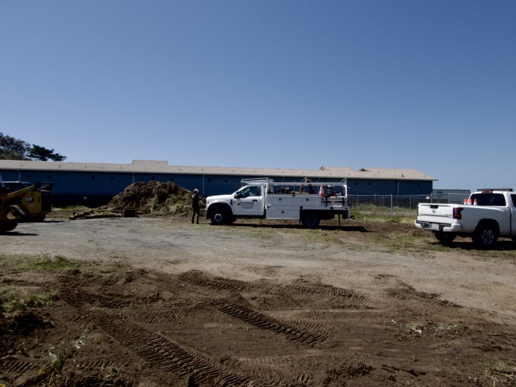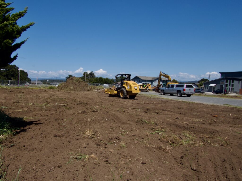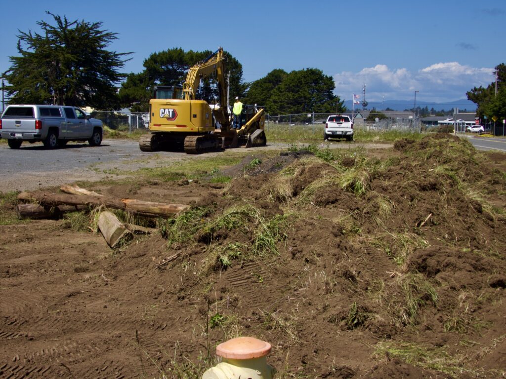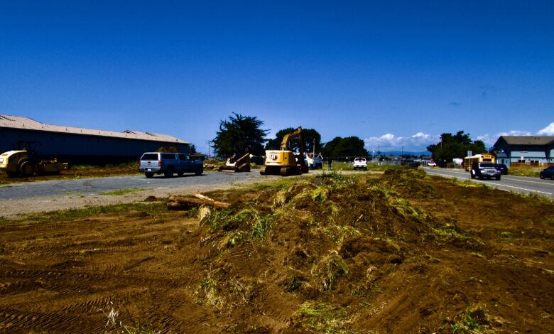 But then we drove down to Noyo Harbor last night and saw a big operation removing all the grass and beginning the parking lot work on the south end of the future Grocery Outlet lot, which is located on the extreme south end of Franklin Street, just short of Noyo Bridge (and one block east).