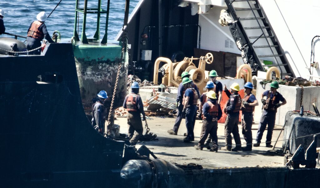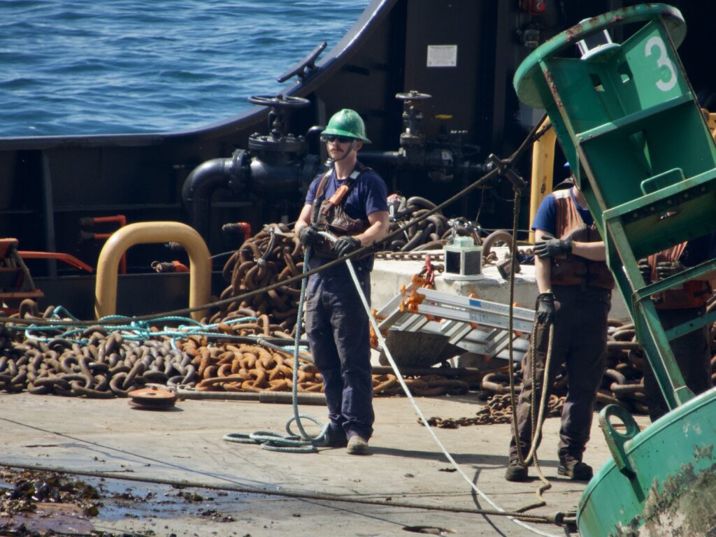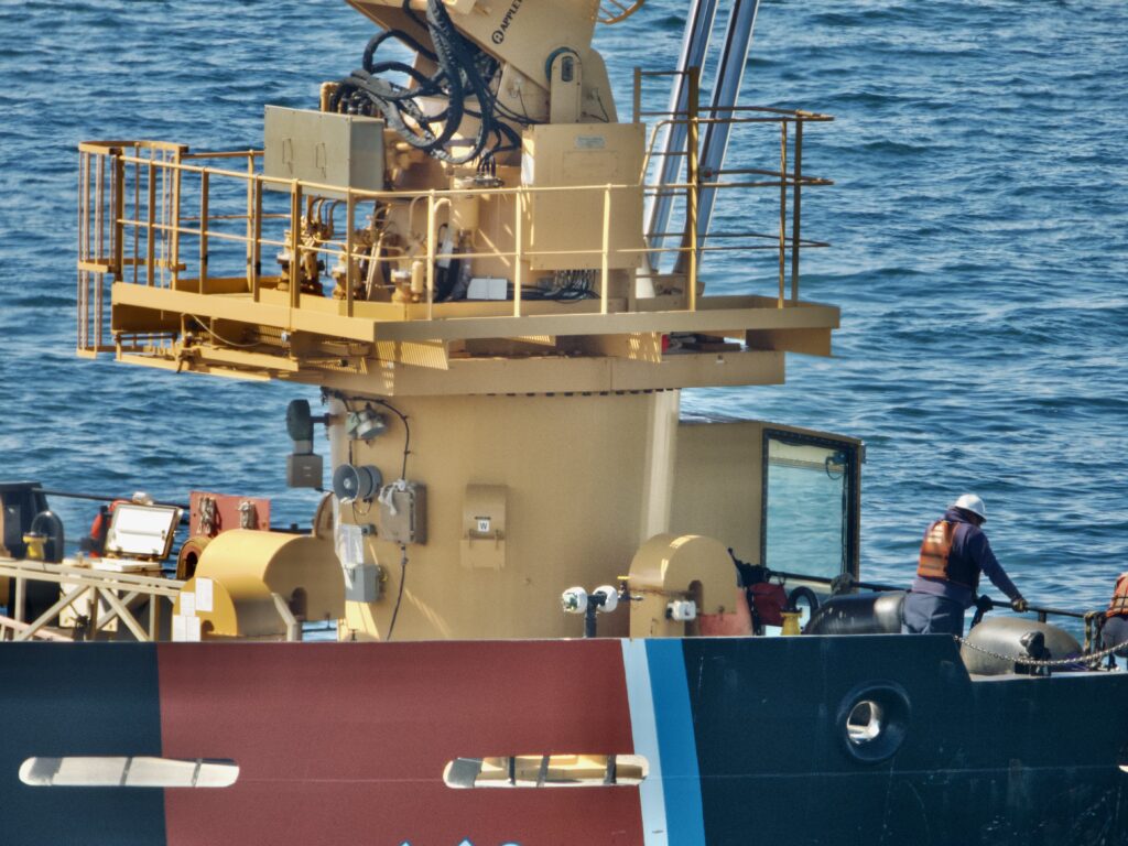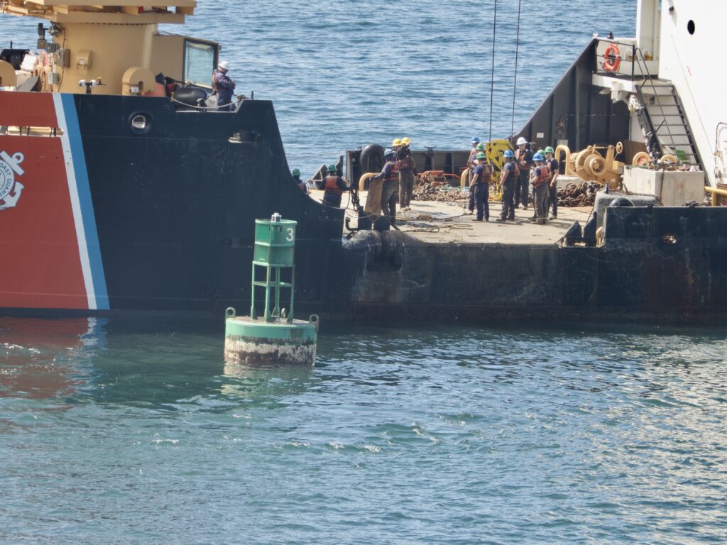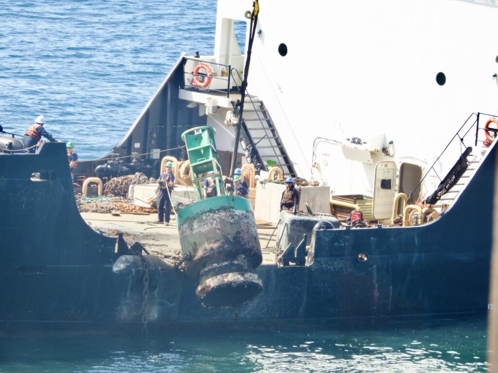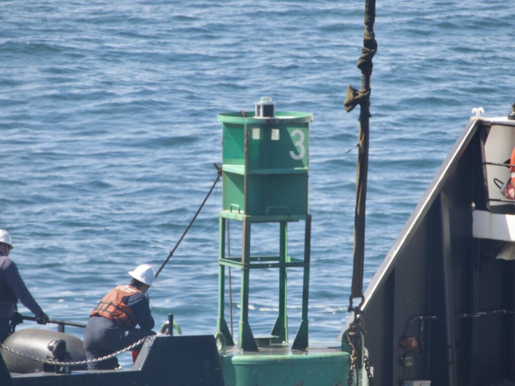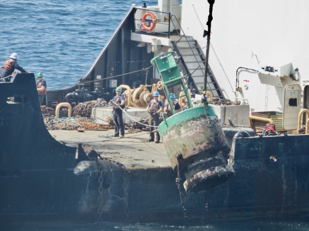The Alder removed the buoy that is closest to the shore, could be seen scraping the barnacles and other marine life from and then put the buoy back. Some sort of repair operation also went on, with the crew giving a cheer heard from shore at one point, as the video shows.