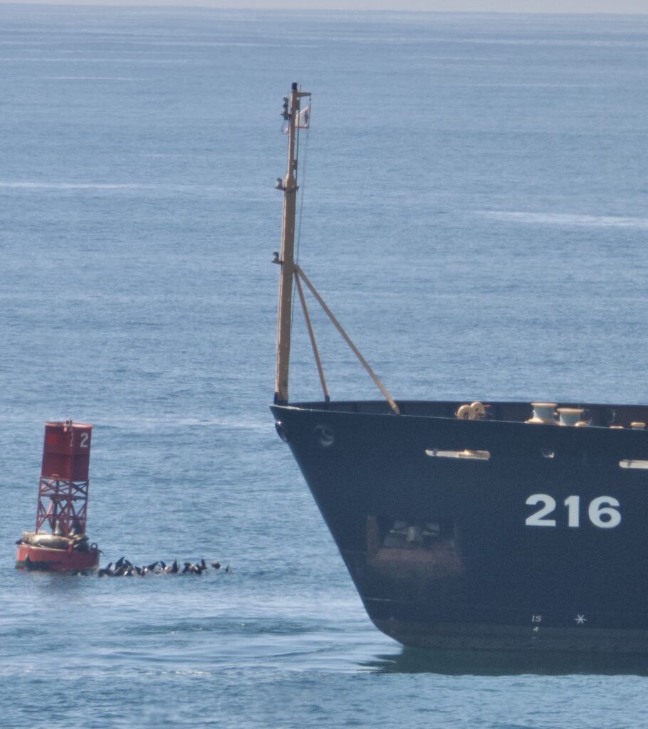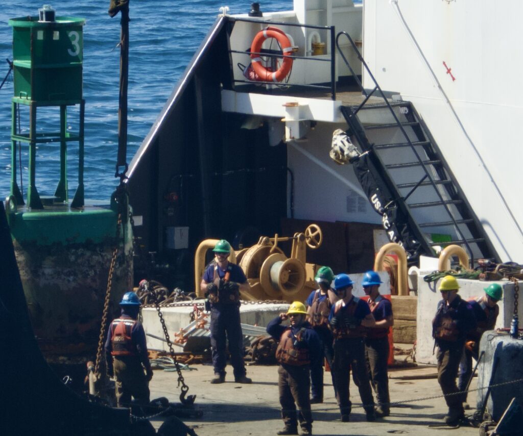 The USCG Alder’s prime mission out of San Francisco is buoy maintenance, repair, and replacement. None of the three Noyo Harbor buoys were replaced, nor was the one in Shelter Cove serviced on Tuesday. The barancles are removed and electronics replaced or upgrded. The ship was launched in 2004 in Minnesota, doing the same buoy work in Lake Superior, along with other tasks in its mission such as ice breaking for navigation.