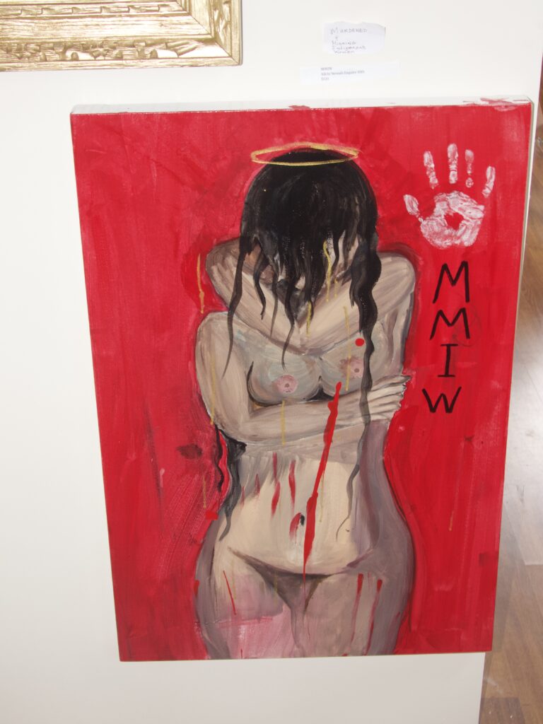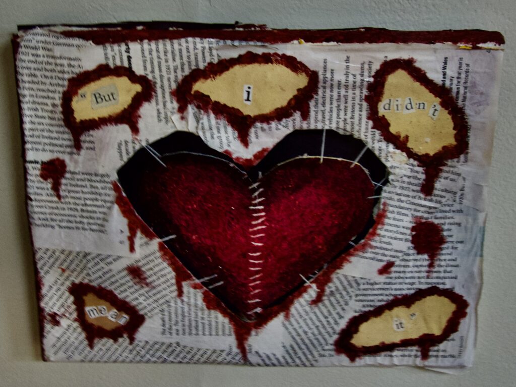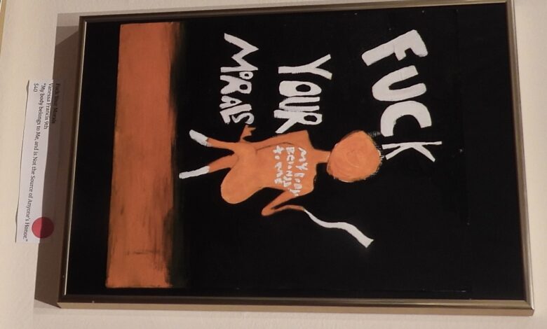 This is experimental art from high school students at its best — raw, fearless, and, frankly, some of it is astonishingly good. These teens are coming of age in a moment that feels chaotic, dishonest, and often cruel, and their work doesn’t look away from any of it. Instead of staring up at the noise and confusion of the wider world, the show invites viewers to look closer: at the art, at their classmates, at their families, at the teachers who steady them. Many pieces take direct aim at the violence women endure and the unstable, truth‑bending world this generation is inheriting.