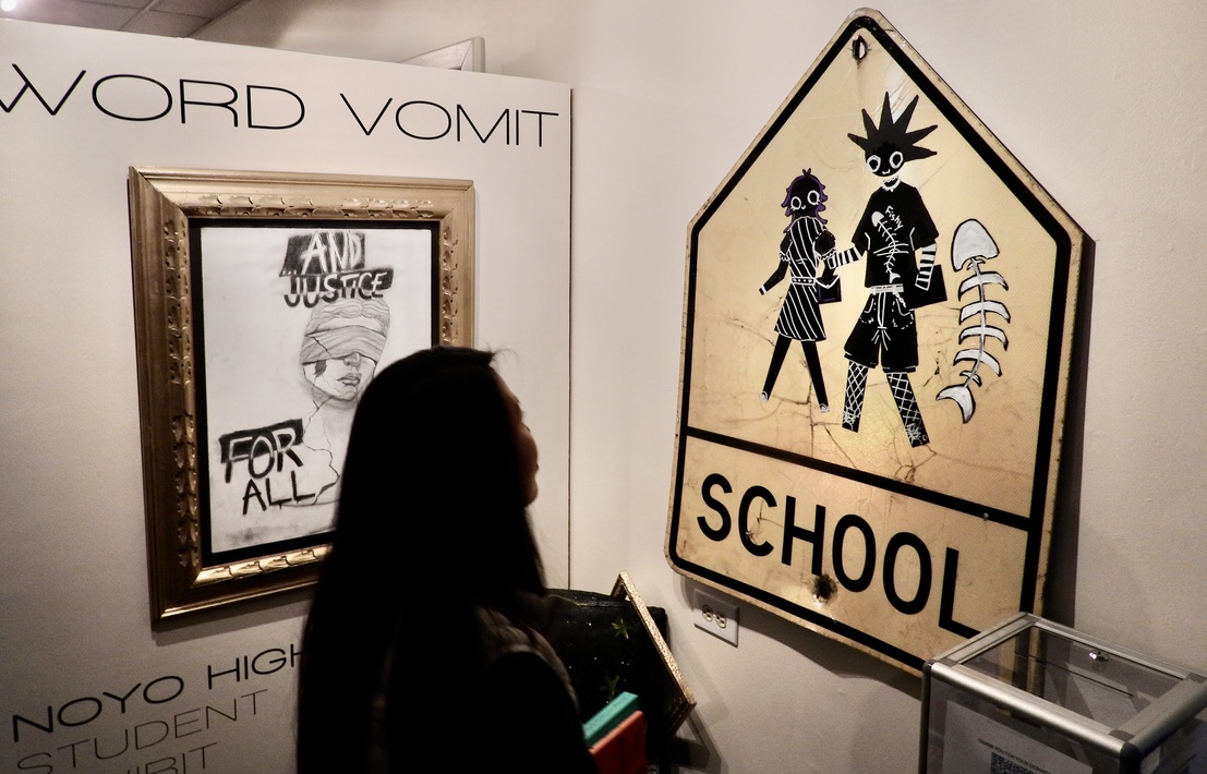 Noyo High School students brought their eclectic art show, “Word Vomit,” to a packed house at Cobalt Gallery. Opening night landed on First Friday, kicking off a month‑long run through the end of February. The show was entirely student‑led, sparked by the vision of Noyo High student Kelsy Aguilar‑Anderson, who shaped the concept and guided it into reality.