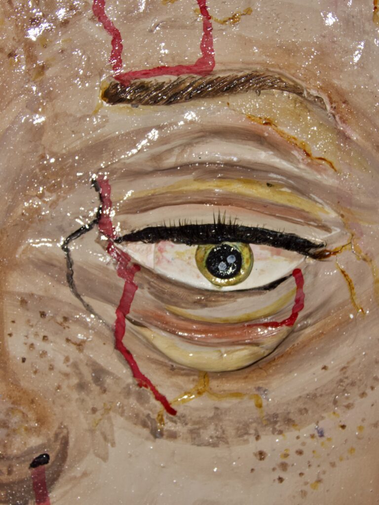 Middle‑ and high‑schoolers aimed their written, sculpted, and painted messages squarely at the so‑called “adults” now running the “real world.” Twenty‑five students created roughly sixty pieces and collaborated on a hideous, gigantic skull layered with handwritten notes. While some works drew from ocean landscapes or the human body, many canvases took aim at a world far more screwed up than any previous generation could have imagined.