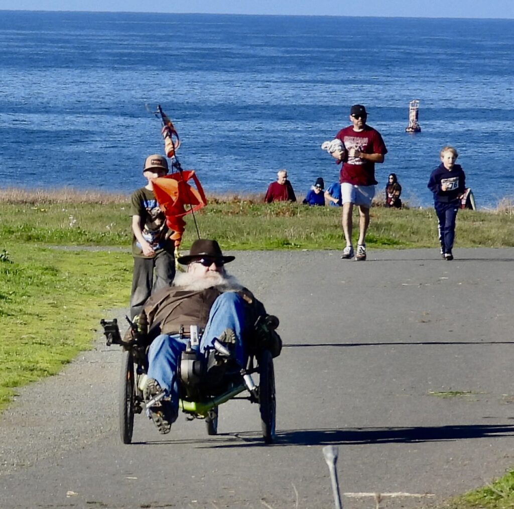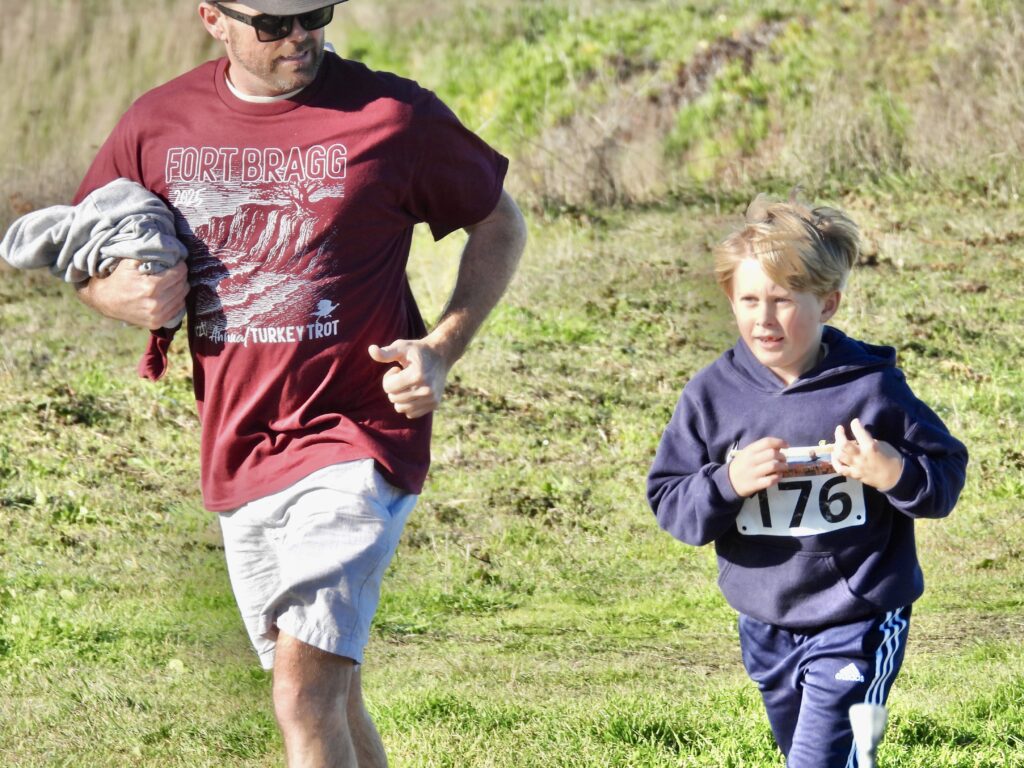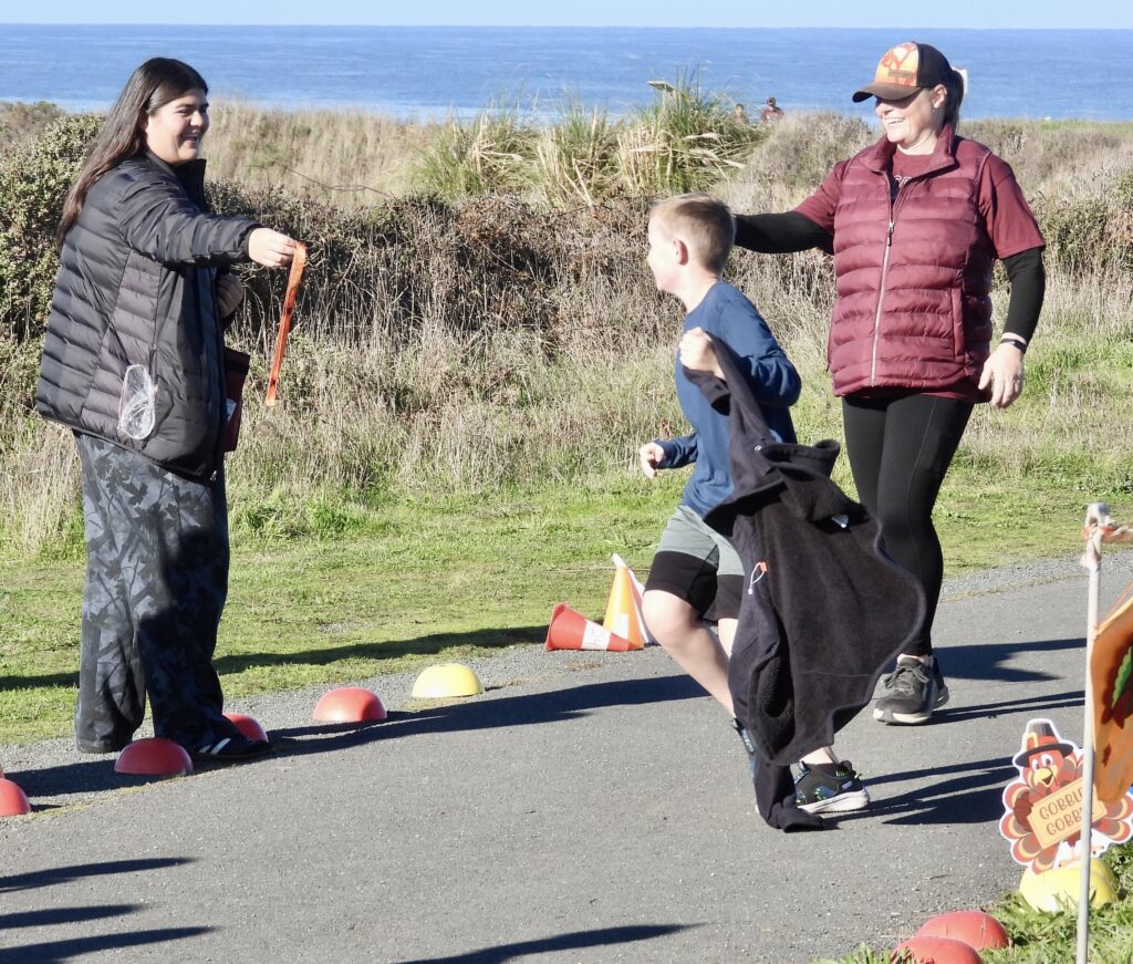 Not everyone was home gobbling with family just yet. The Bluffs brimmed with partiers taking part in the non‑competitive Turkey Trot, an event that fittingly supports the Food Bank. Runners paid a fee, pulled on sweatshirts, and hit the trails, cheered as they crossed the finish line. More than 200 registered, and even more filled the paths of the Noyo Headlands. It was a great day for a race—the human race. Kids, free from school, basked in bright sunshine and reveled in the rare gift of summery weather on Thanksgiving.