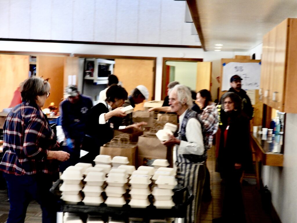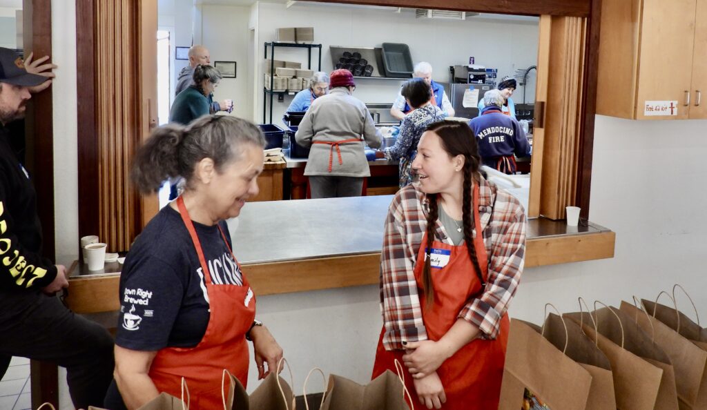 Across town the scene is even busier. More than 1,300 people are being fed as Fort Bragg Presbyterian Church hosts its annual FREE Community Thanksgiving Dinner, welcoming coastal residents from Westport to Albion. The hall is full, meals are being picked up and delivered, and the homeless are finding a place at the table. Over 175 volunteers prepare, serve, and deliver more than 1,000 plates of turkey with mashed potatoes and gravy, honey‑glazed carrots, cranberry sauce, dinner rolls, and pumpkin pie. It is generosity in motion, a feast that nourishes both present bellies and future hope.