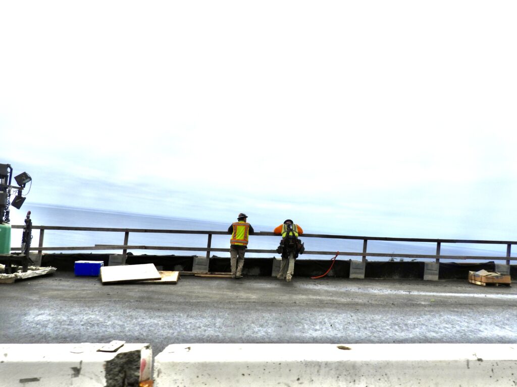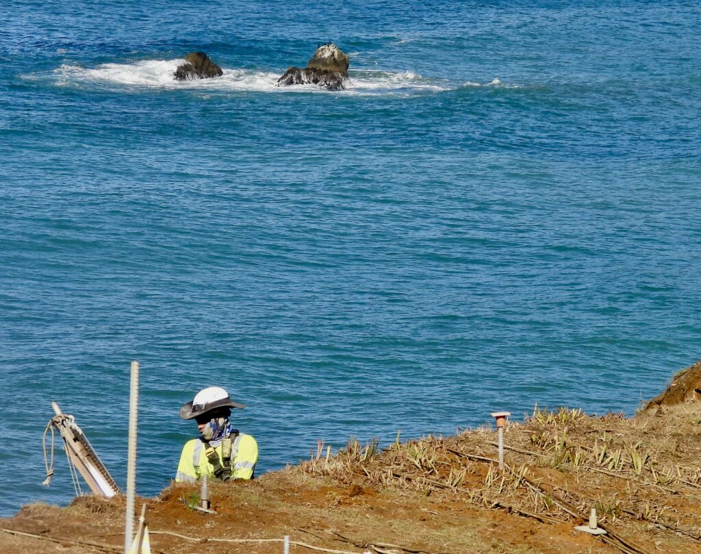 Moving Highway 1 east won’t work above Blues Beach—the hill to the east is little more than super massive sliding pile of mud, pushing the road toward the precipice. The solution: a massive plumbing system drilled into the hillside. Engineers believe it can hold, and the plans are impressive. Yet everyone we spoke with, from construction crews to locals, asks the same haunting question: how long can you fight Mother Nature and Father Time?