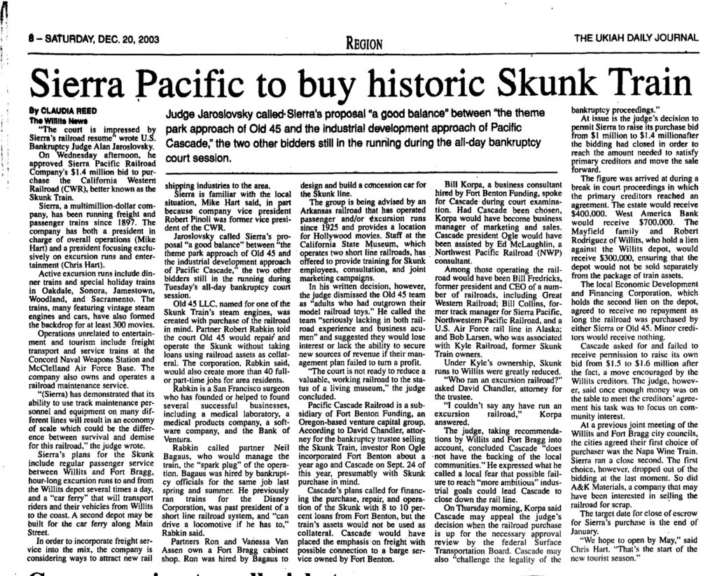 Frank Hartzell, working with the Mendocino Voice, broke several stories that neither the city or the Skunk wanted to talk about at the time, in my opinion. (To stave off the usual attacks to make points). The following suit remains active and we plan an update on that.