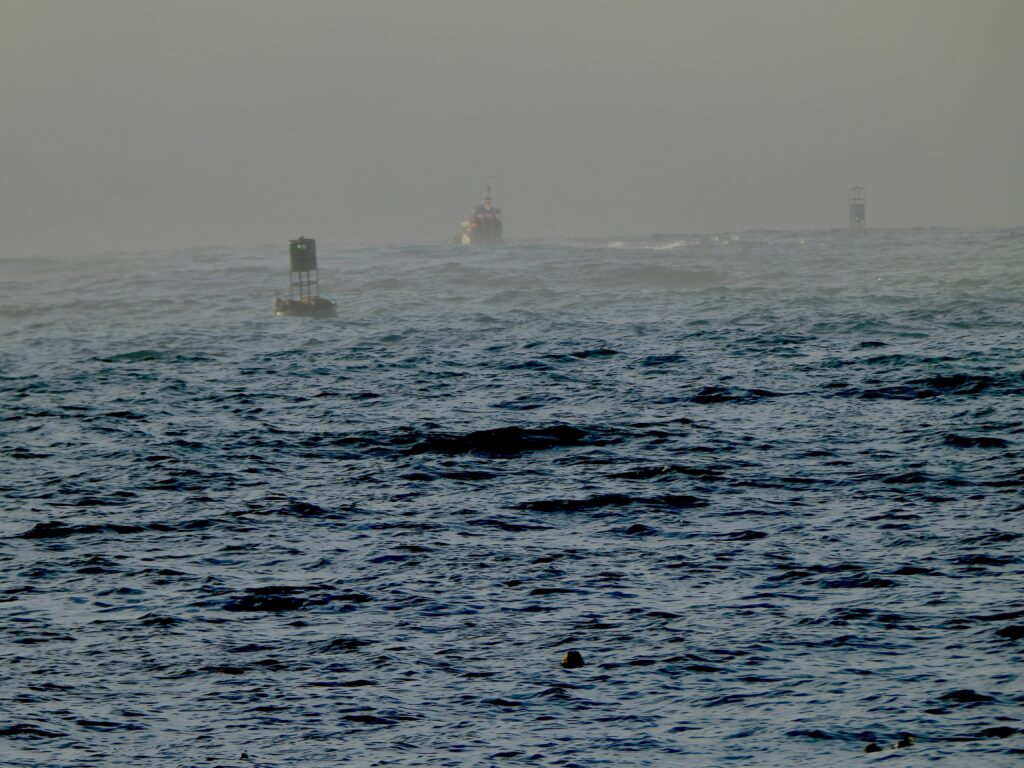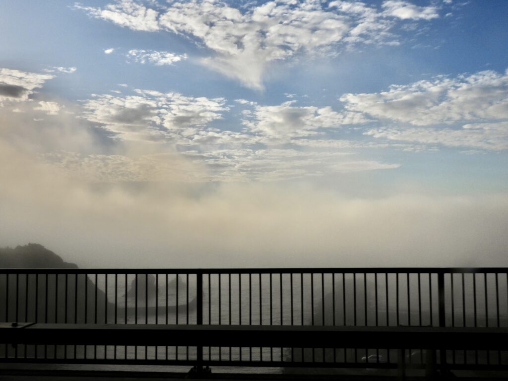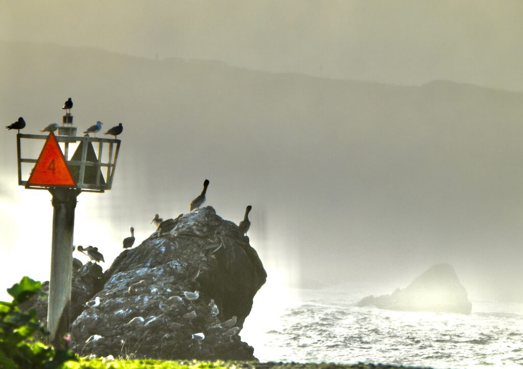 Soon, they were swallowed and we could see the clear day at the beach was over- on to Mendo to check the bridge light!