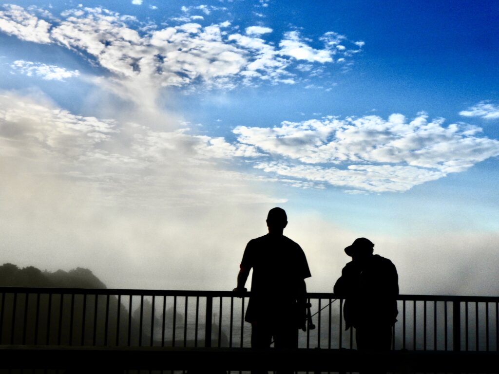 These gentlemen enjoyed the show as much as the birds. The thickness of a fog layer is largely determined by the altitude of the inversion boundary, which in coastal or oceanic locales is also the top of the marine layer, above which the air mass is warmer and drier. The inversion boundary varies its altitude primarily in response to the weight of the air above it, which is measured in terms of atmospheric pressure. The marine layer, and any fog-bank it may contain, will be “squashed” when the pressure is high and conversely may expand upwards when the pressure above it is lowering.