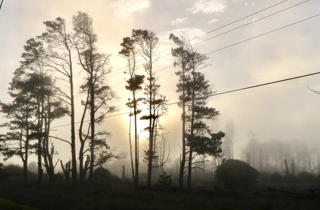 Conifers are so dominant on the Coast partly because they can drink fog. Redwoods can;t get as tall where there is no fog, as pulling water up from roots that high challenges the laws of physics. Redwood forests in California receive approximately 30–40% of their moisture from coastal fog by way of fog drip. We are at Jughandle on our way to the light.