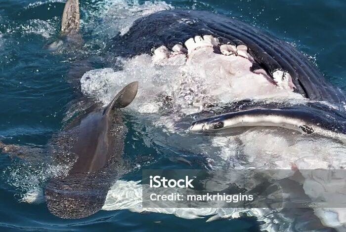 We contacted State Parks and local law enforcement to alert them. Sharks are known to scavenge dead whales, sea lions, seals, elephant seals, dolphins, and even other great white sharks.