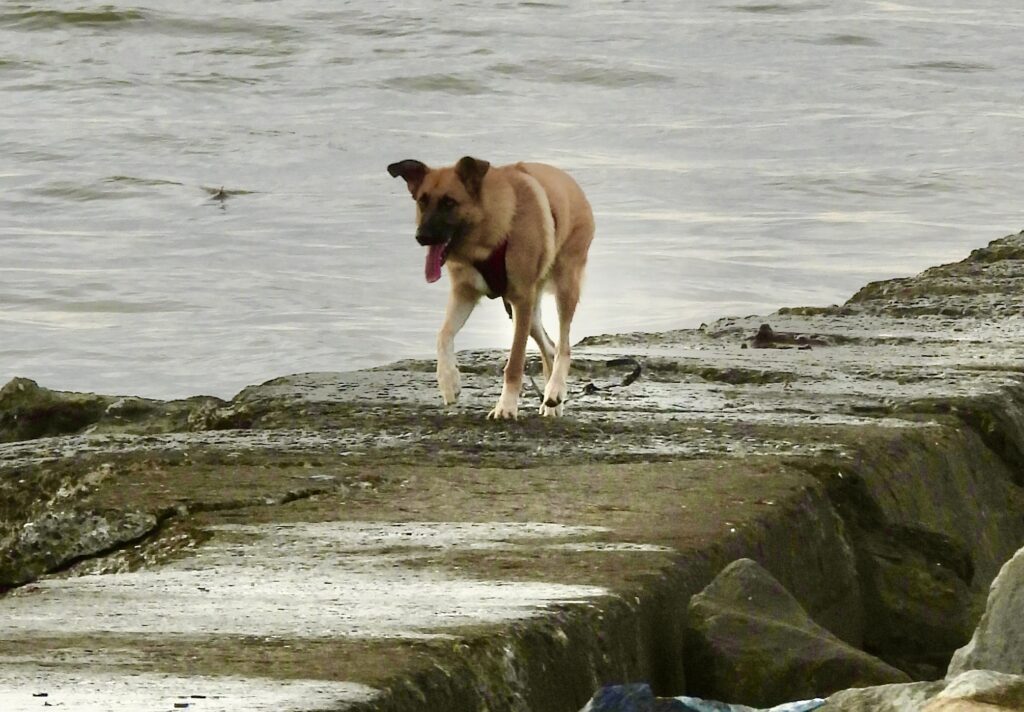 Today, Caesar wandered off to the far end of the jetty and sat alone, watching the ocean for a full five minutes — as if he were contemplating the meaning of life or listening for something only dogs can hear. Brutus, of course, had no such philosophical ambitions.