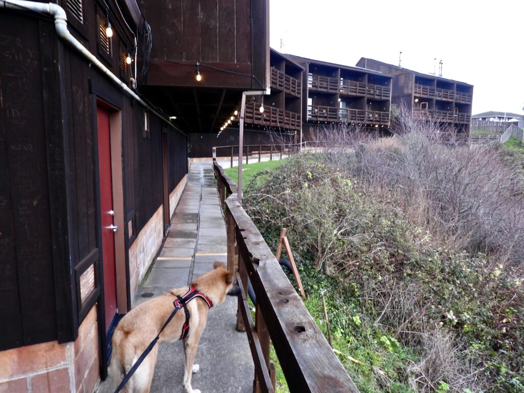 Caesar and I enjoyed the sunset from the walkway that runs from the top of North Harbor Drive down toward Princess Seafood under the bridge. Harbor Lite Inn, long the marquee property of the Hurst family, was sold in 2021 for $6.8 million to GP Investors Inc. Its primary owners according to the website are siblings Bob Hunt and Pamela Amante, also own the Wharf and the iconic Beachcomber—solidly in the mid to upper‑mid range. In winter, these are two of the best spots in town for hosting visiting relatives.During the Civil War era, lumber baron Alexander MacPherson chose a spectacular perch above his mills to build a grand home. Today, the view is even finer from the Noyo Harbor Inn, which now occupies the site. In 1912, the Holmes family purchased the property from Union Lumber Company and enhanced it with the extraordinary local woods available at the time. The home passed through several owners and briefly operated as an inn in the 1990s before that venture closed. In 2011, Joseph Marino purchased the property and renamed it the Noyo Harbor Inn. Between 2011 and 2017, the inn underwent extensive renovations, with local artisans using the finest indigenous materials to create spacious, comfortable rooms while preserving the building’s craftsman‑style charm. The inn officially reopened on Thanksgiving Day 2017, restoring a historic gem to the community. We’ve enjoyed many memorable dinners there.The Wharf was reported to have been purchased by the Hunt siblings earlier this year, yet property records still list the Hursts as owners. It may be that the Hunts acquired the business rather than the real estate. We’ll know more after our next trip to Ukiah..The Noyo River Bridge features the open, scenic railings the community fought hard to secure when Caltrans replaced the bridge in 2004. I covered the opening for the Advocate-News in 2005 and still have the photos. The railing design resurfaced in public debate last year after a young man apparently jumped from the span, with some questioning whether the rails were too low or too easy to climb. Documents Frank later obtained showed the old bridge had been in far worse condition than anyone realized. That earlier bridge also had its moment in cinematic history, appearing in Noyo Harbor’s iconic films The Russians Are Coming and Overboard.This building appears to be apartments now, though it was once part of the Hurst–Silver hotel‑restaurant complex. I’m also digging into the history of the North Harbor Trading Company. The business looks old, but the name “North Harbor” didn’t come into use until after the high bridge was built at the end of WWII. Before that, it was all one harbor, linked by a low bridge. Always snazzy sports cars out front. We enjoyed a fantastic Midwestern‑style, classy, and delicious birthday dinner at the Wharf. Its familiar ambience warms the hearts of many Central Valley visitors who still miss places like the old Refuge in ColusaBack in the 1980s and 1990s, the harbor was dominated by characters, hustlers, and assorted oddballs. As Dusty Dillon told me when he bought what is now Princess Seafood, you could practically walk the length of the harbor under a patchwork of tarps. Makeshift, unpermitted structures were everywhere, and the late Jimmy Cummings controlled much of the north harbor. The positive transformation since then has been remarkable, thanks largely to Stephen Dunlap and the Princess crew, who have brought everything fully aboveboard—at least as far as we can tell, lol. Quite the turnaround.The Noyo ran muddy brown and mighty today, but we dodged a bullet. Had Sunday’s heavy rainfall arrived on Friday during the king tides, flooding would have been a serious problem.Brutus needs his daily constitutional swim to sleep well at night. He used to head out so far he was just a tiny dot on the water. Now, at 10, he’s a bit more cautious, but he still loves the ocean with all of his big, goofy, and ferocious heart.New doggo friends are always a joy. Noyo Beach is one of the area’s two off‑leash dog beachesLinda and I took turns photographing each other in the old riverbed. I’m standing on all alluvial rock. The creek still flows, though I haven’t been able to find an official name for it. Judging from the width and depth of the historic outflow, it was once a much more substantial body of water.Linda absolutely rocked the Moses/Elijah prophetic staff—far better than I did. She looked ready to command the tides, while I mostly looked like a minor sea god whose powers were limited to politely requesting calmer waves.Brutus insists that he and I compete — and compete hard — every single day. It’s all tug‑of‑war and trick‑the-human games. Everyone else is a friend; I’m the designated rival. He needs that daily battle, and I’m starting to realize I do too. Caesar, meanwhile, wants no part of arguing, growling, or wrestling and bolts the moment we startIf I fool him and hide the stick or ignore him, I get this, the challenge face.Then this demand that the game resume. NOW!When you’re a great swimmer, it doesn’t take long before a pretty gal named Sugar glides in beside you — matching your strokes, tossing you a look, and making sure you notice she’s got styleWhile Brutus and I tussle, tug‑of‑war, fetch, and play hide‑the‑stick, Linda tunes out the snarling, barking, and general chaos and quietly finds heart‑shaped rocks — Love on the Beach.The jetty had been overtopped at high tide. The dogs won’t go near it when the ocean is upThe clouds seem to mimic the bridge. The Todd Point Headlands always pose for a sexy photo. The South Harbor, seen here, proudly calls itself the working harbor. The North Harbor has plenty of jobs too, though they’re more tourist‑oriented — party boats, markets, a distillery, and restaurants..If you’re a gull, this seawall is the perfect place to poop and socialize. For sailors, old and new, it’s a w